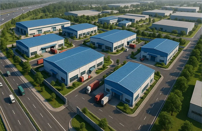 Large industrial land parcel with excellent infrastructure support, ideal for manufacturing units, warehouses, or logistics facilities.